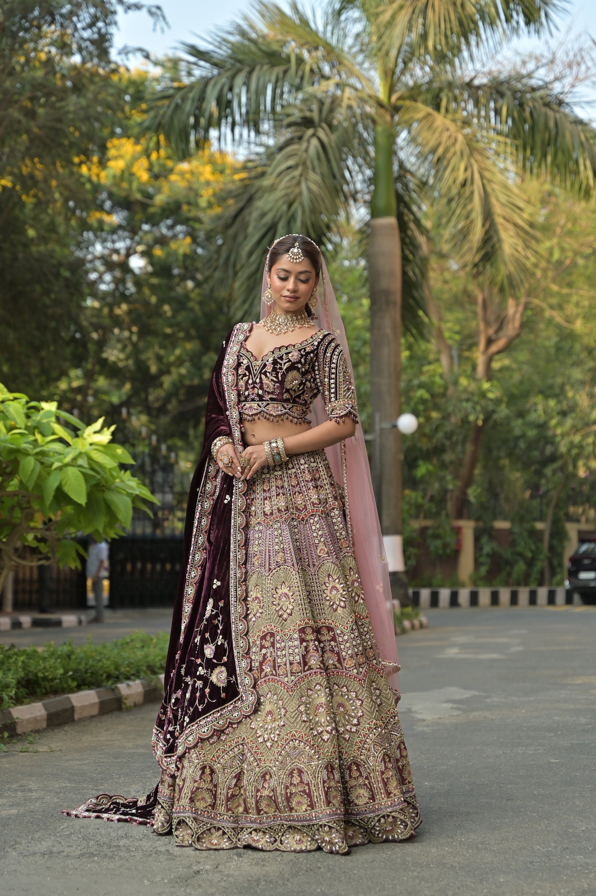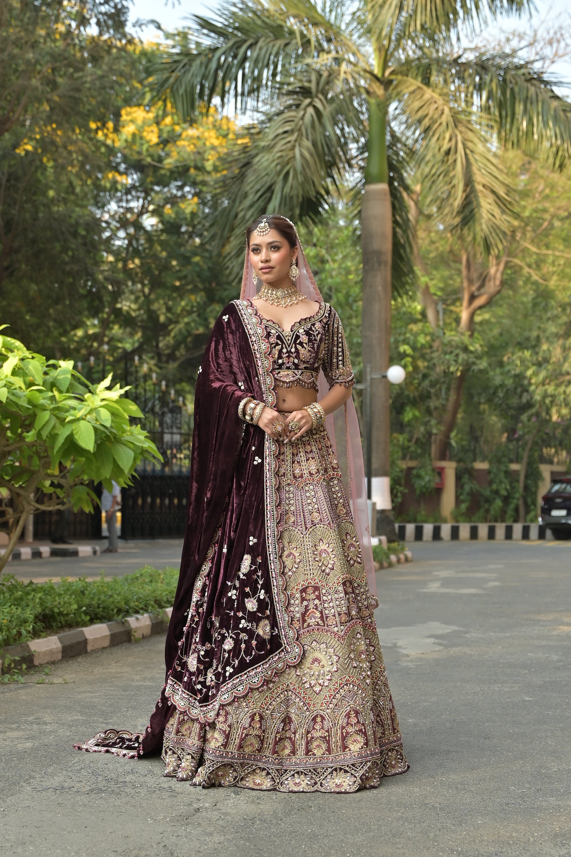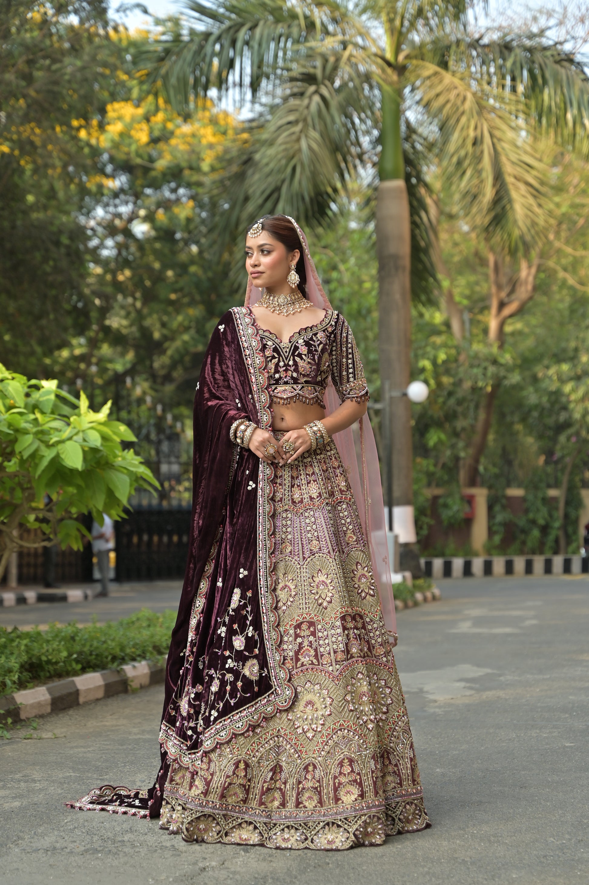 This stunning designer bridal lehenga is a masterpiece of intricate craftsmanship, perfect for weddings and grand festivities. Key features include: