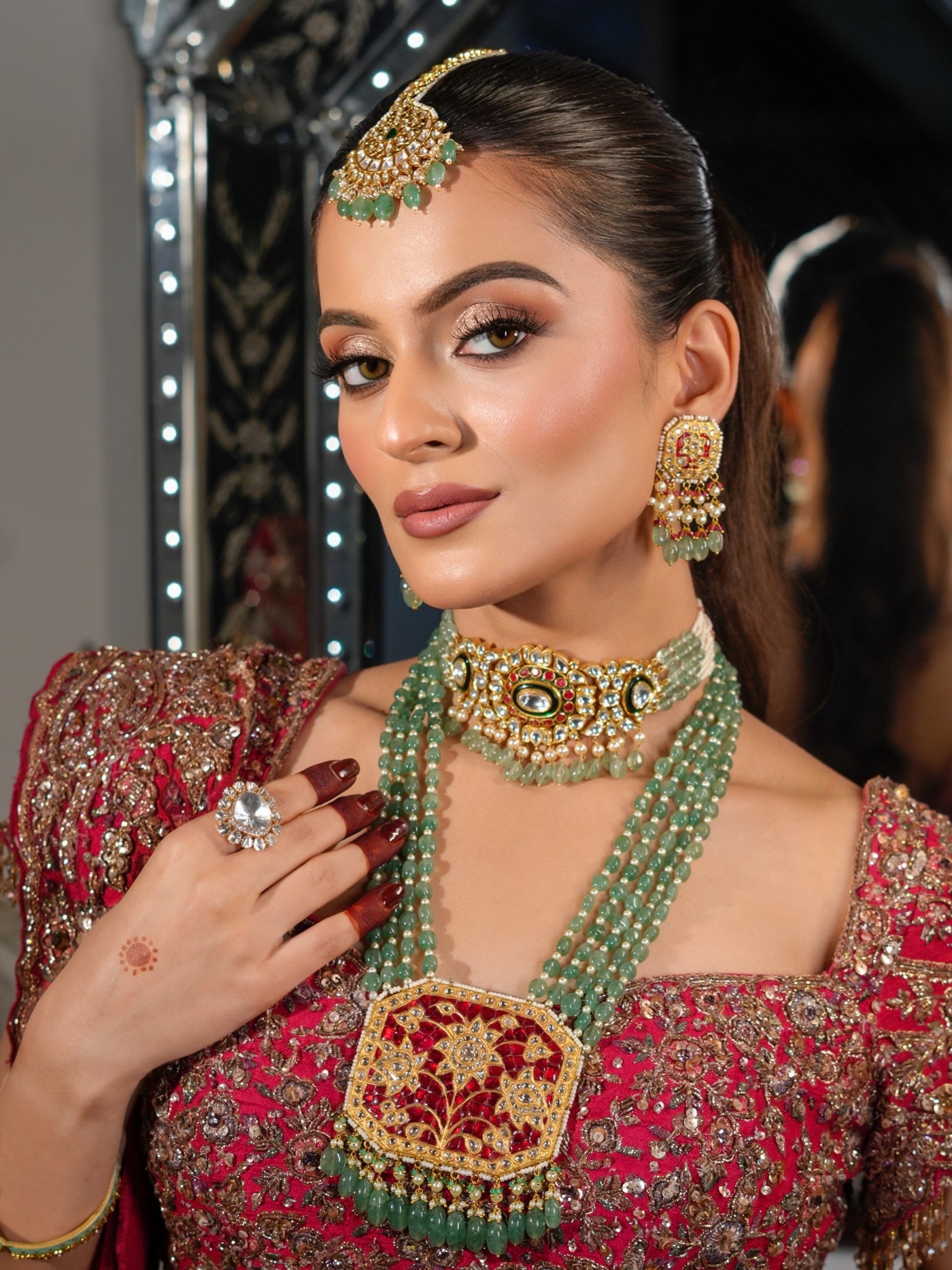 Dupatta: A sheer, lightweight net dupatta with an embellished border, gracefully draped to enhance the outfit’s royal aura.