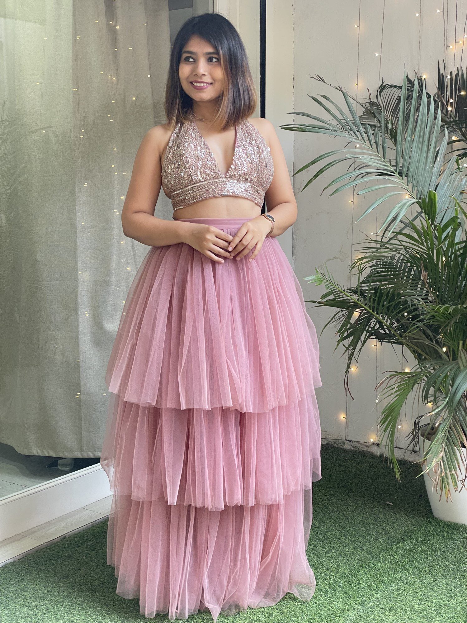 This charming and feminine maxi dress features a soft, romantic floral print in shades of pink and muted green on a light base. The dress has thin spaghetti straps and a sweetheart neckline, creating a delicate and flattering bodice. The waistline is subtly defined with a thin, embellished belt or band that adds a touch of sparkle and structure.