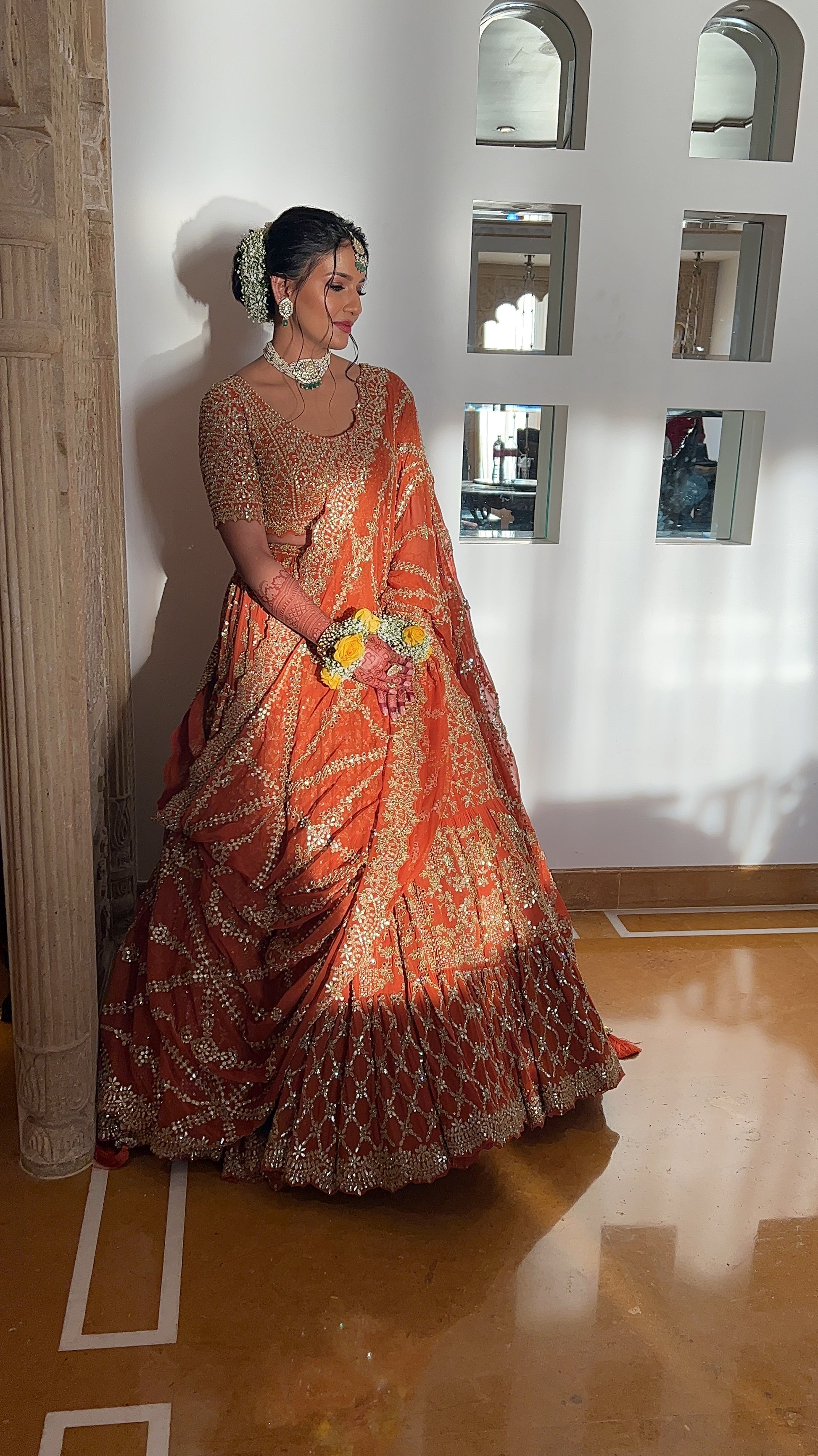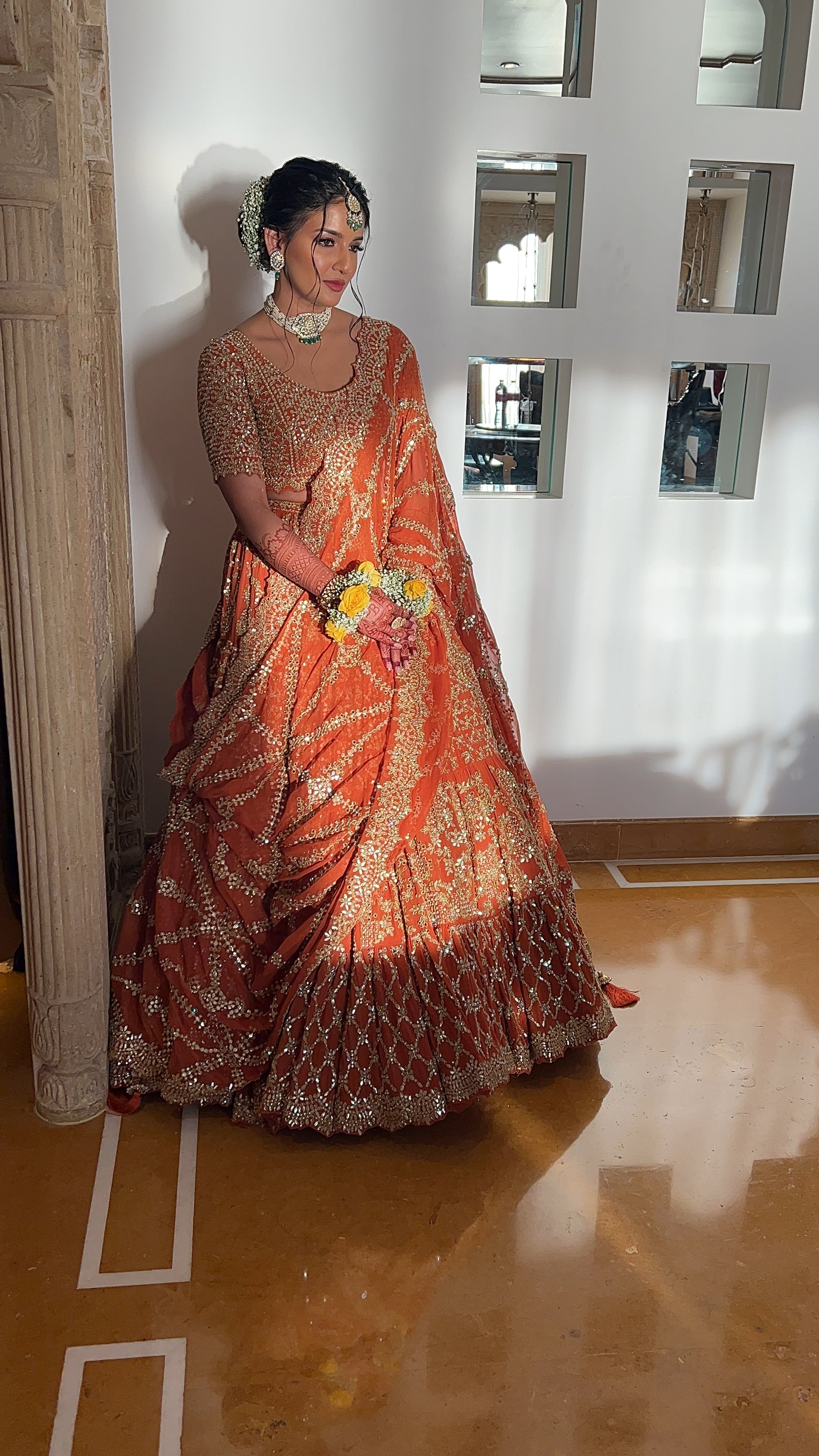 Experience the elegance of "Shama" by Seema Gujral, a meticulously crafted outfit that blends traditional artistry with contemporary design. This ensemble showcases exquisite detailing and premium fabrics, offering both comfort and sophistication. Perfect for special occasions, it reflects refined craftsmanship and timeless style, making it a distinguished choice for those who appreciate expert design and quality.