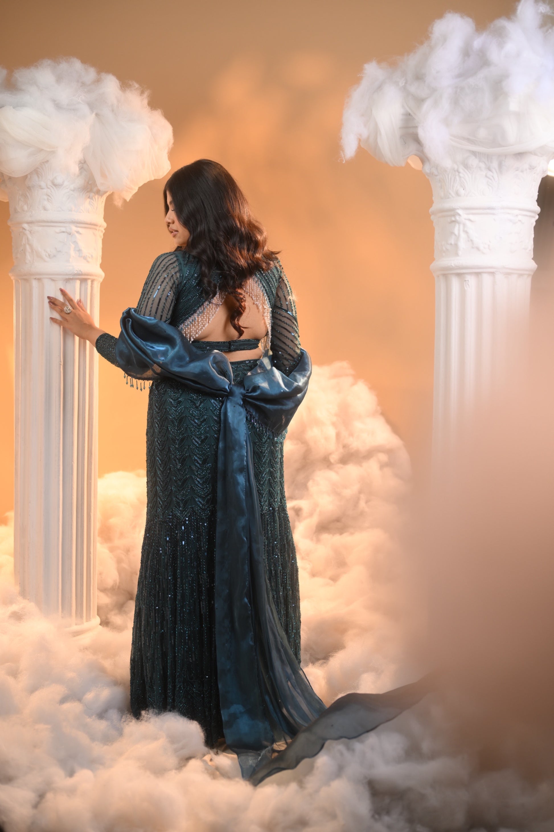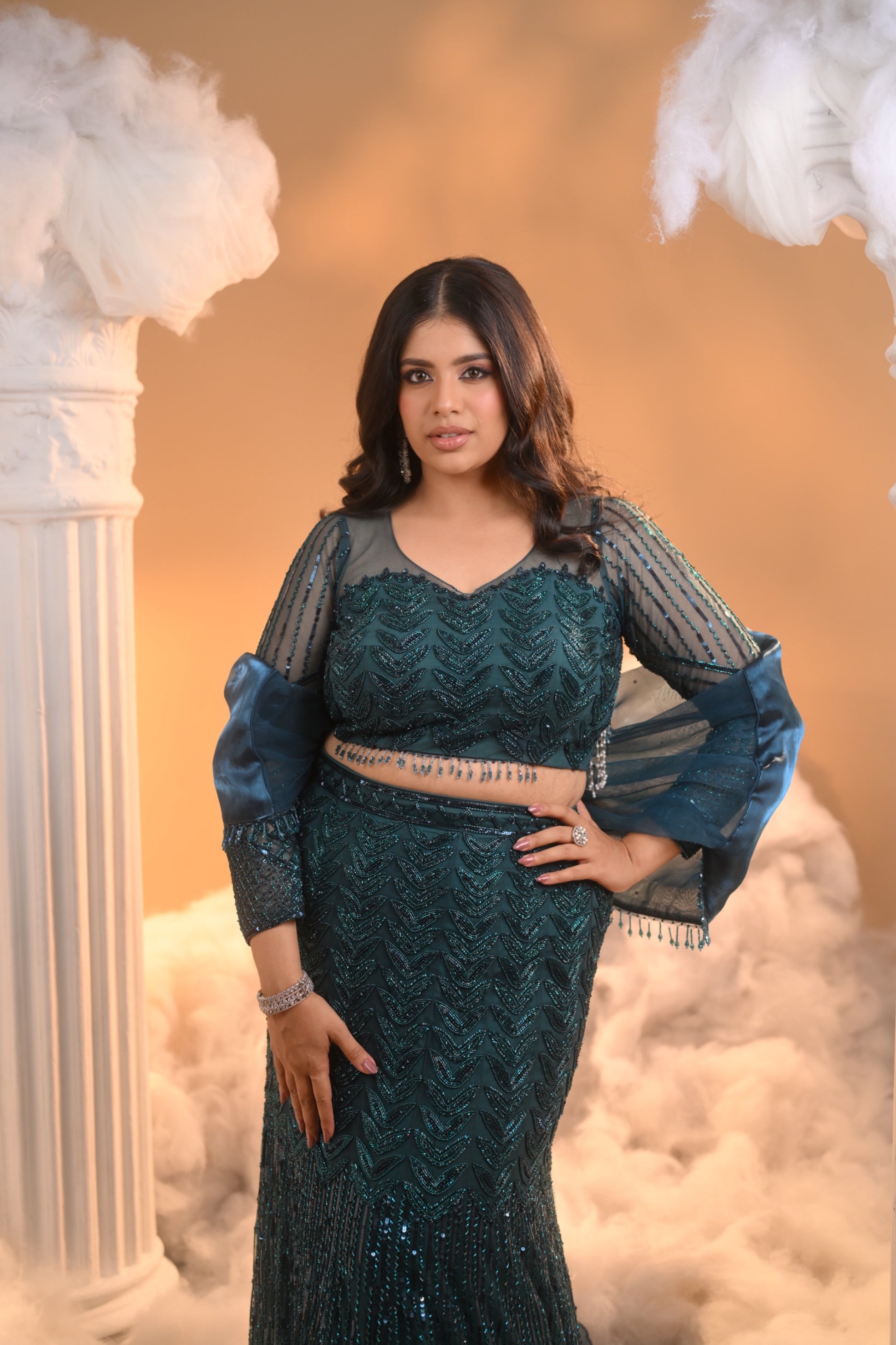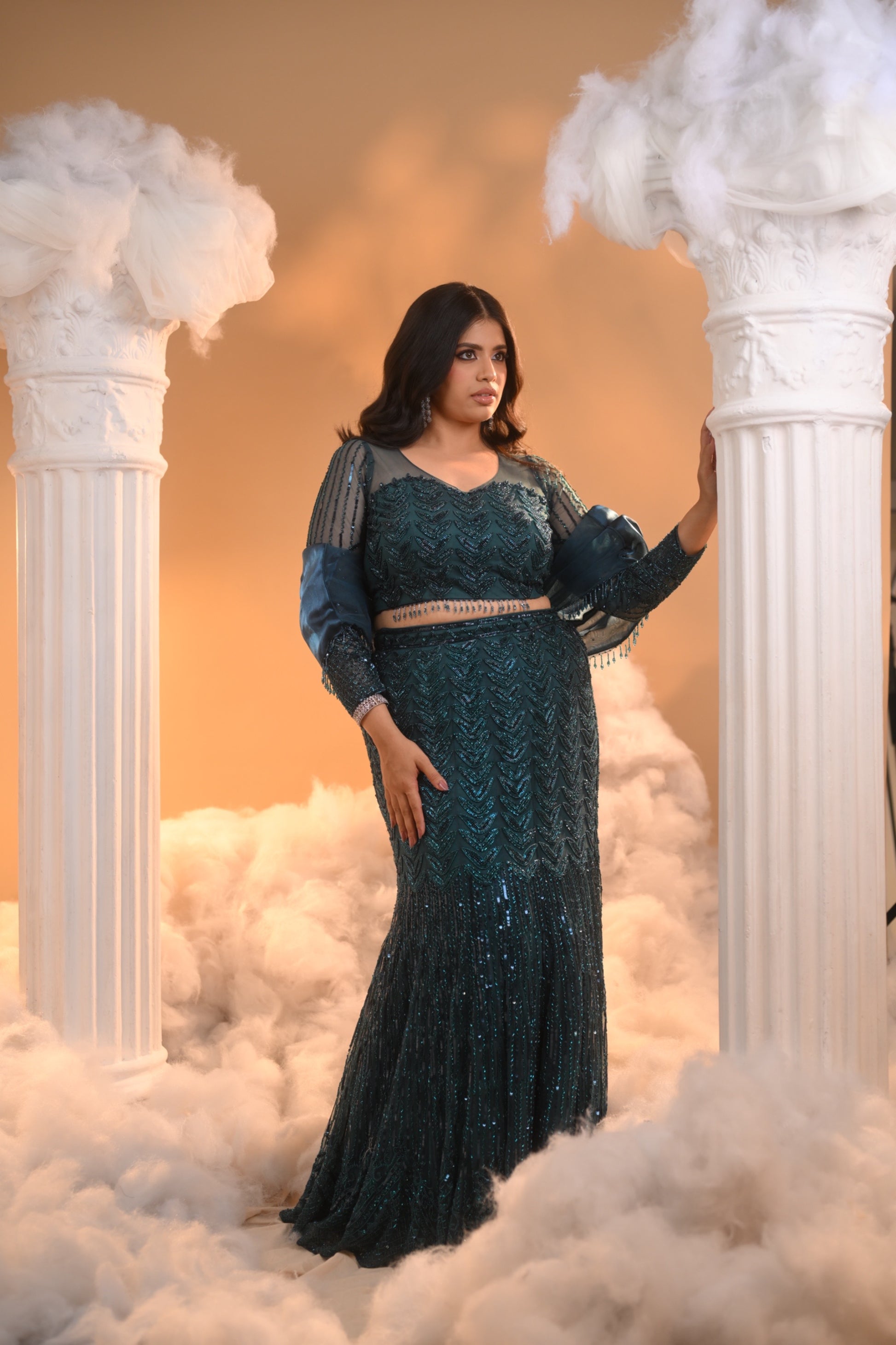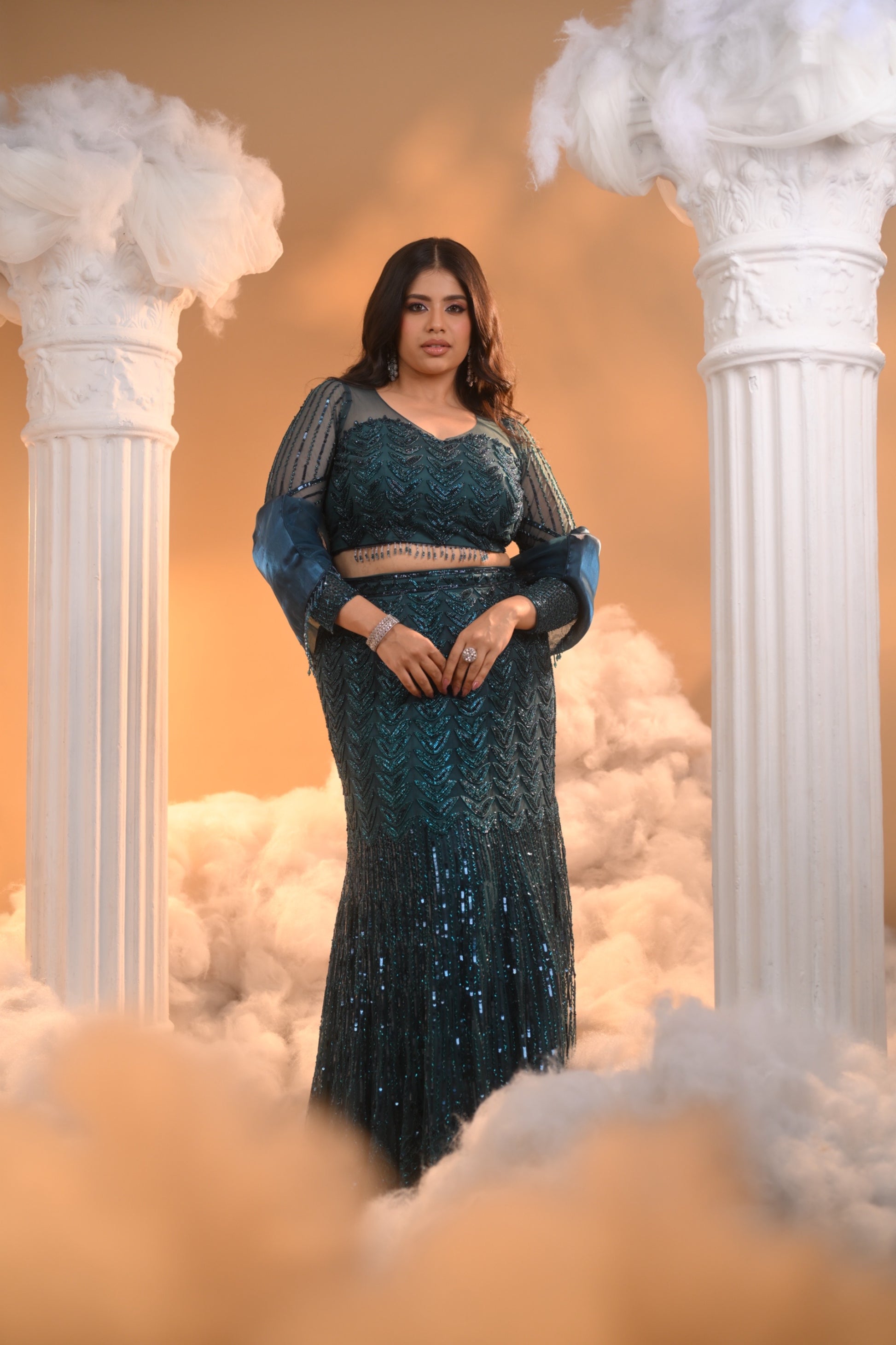 Transform into a mystical creature with the Teal Mermaid outfit. Made with high-quality materials, this outfit will make you stand out at any themed party or Halloween event. The vibrant teal color and intricate scale design will give you a mesmerizing mermaid look. Perfect for those looking to add some fantasy and magic to their wardrobe.